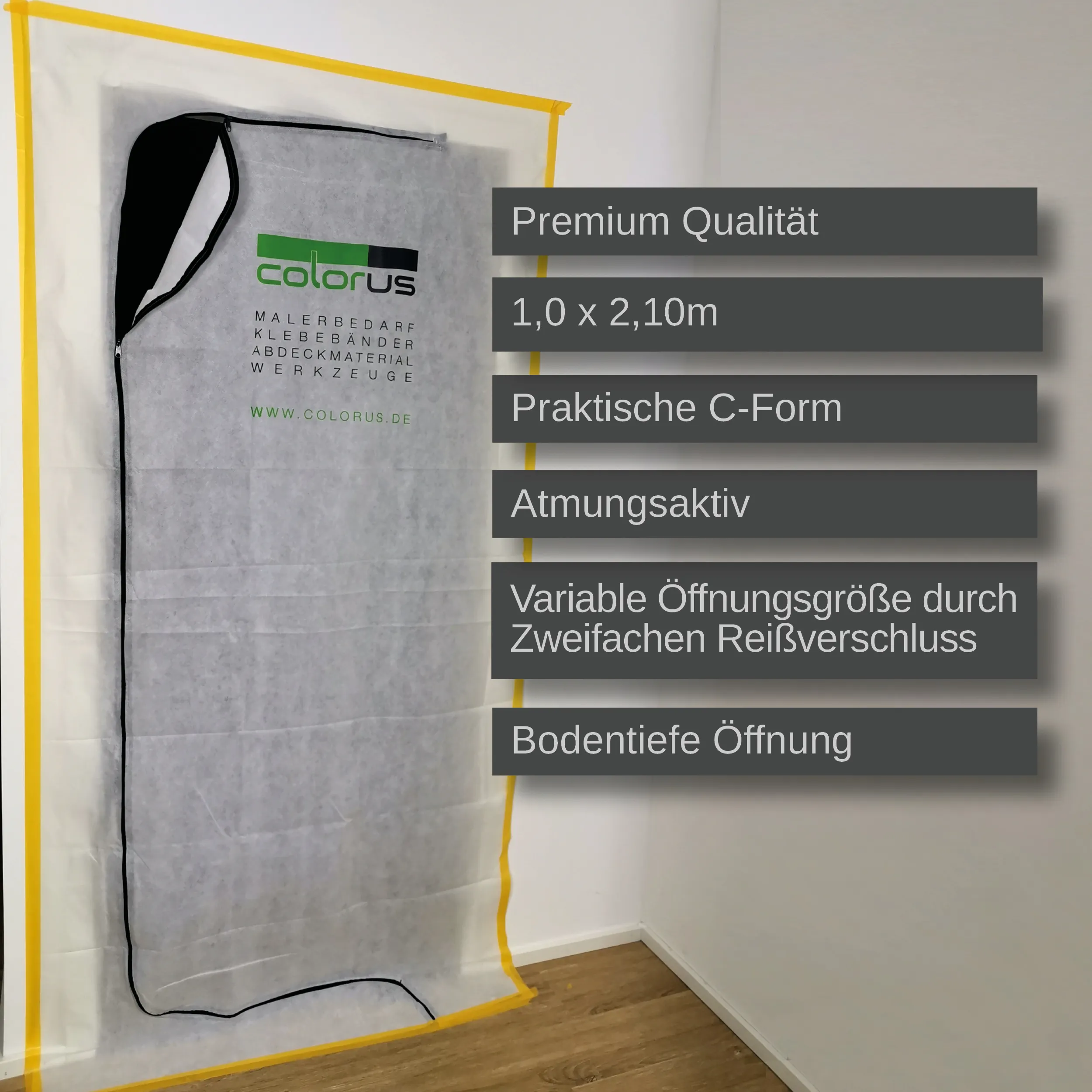 Colorus DUO Staubschutztüre PLUS Spinnvlies mit C Reißverschluss bodentiefe Öffnung atmungsaktiv