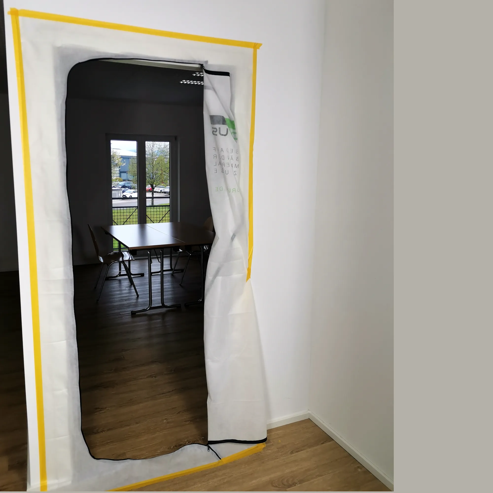 Die patentierte Staubschutztüre DUO aus Spinnvlies ist garantiert professionelle Einsatztauglichkeit. Sie ist atmungsaktiv und sorgt für komfortablen Durchgang dank bodentiefer Öffnung.