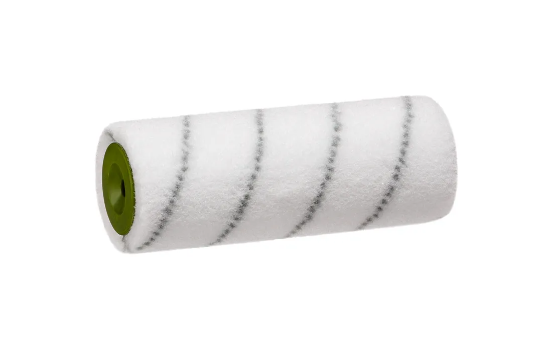 Nylonfasern sind von Haus aus etwas steifer. Um ein absolut perfektes Oberflächenbild zu erhalten, waschen Sie die neue Walze vor dem ersten Einsatz kurz aus. Das "bricht" die Faser leicht auf.