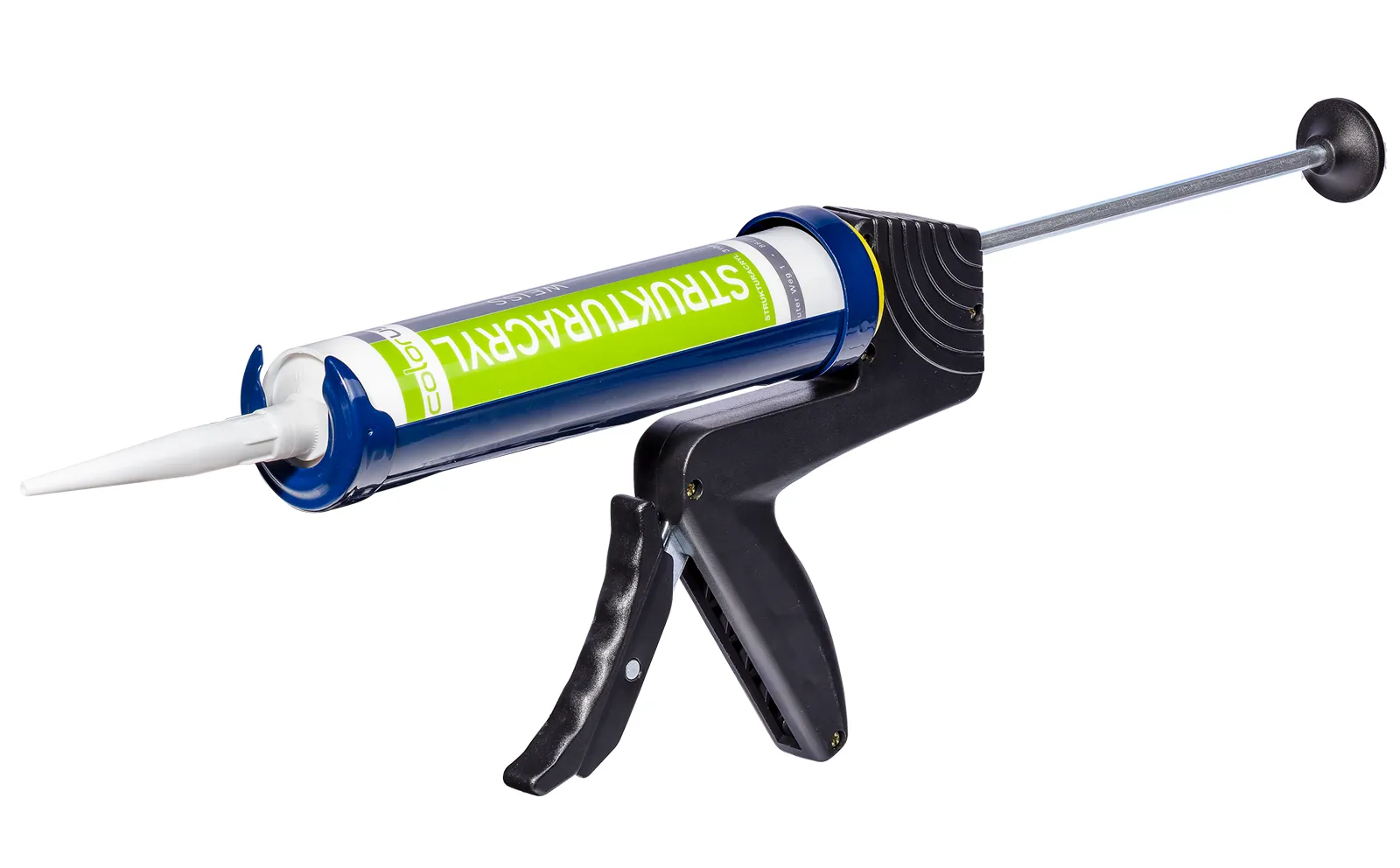 Die Premium Kartuschenpresse Metall mit drehbarer Halbschale ist eine robuste Profi-Kartuschenpistole für das saubere, gleichmäßige und kraftsparende Auspressen von Dicht- und Klebstoffen aus Standardkartuschen.