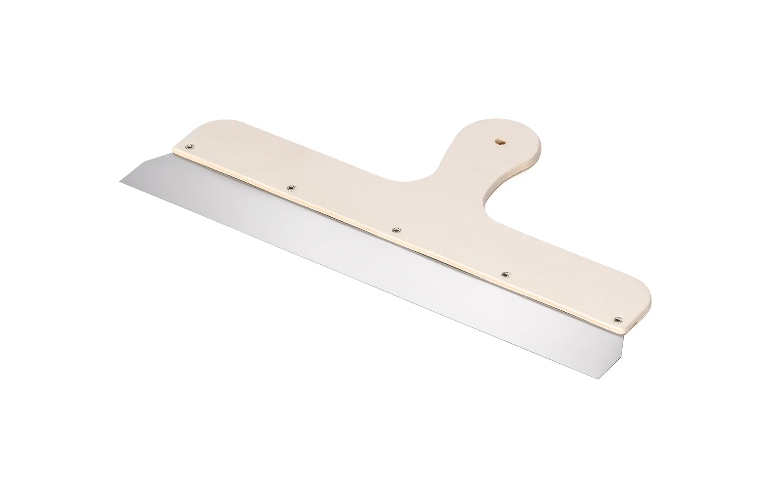 - Mehrschichtholzgriff Flächenrakel mit ausgestellter Edelstahlklinge für großflächige Spachtel- und Glättarbeiten bis in die Ecken.