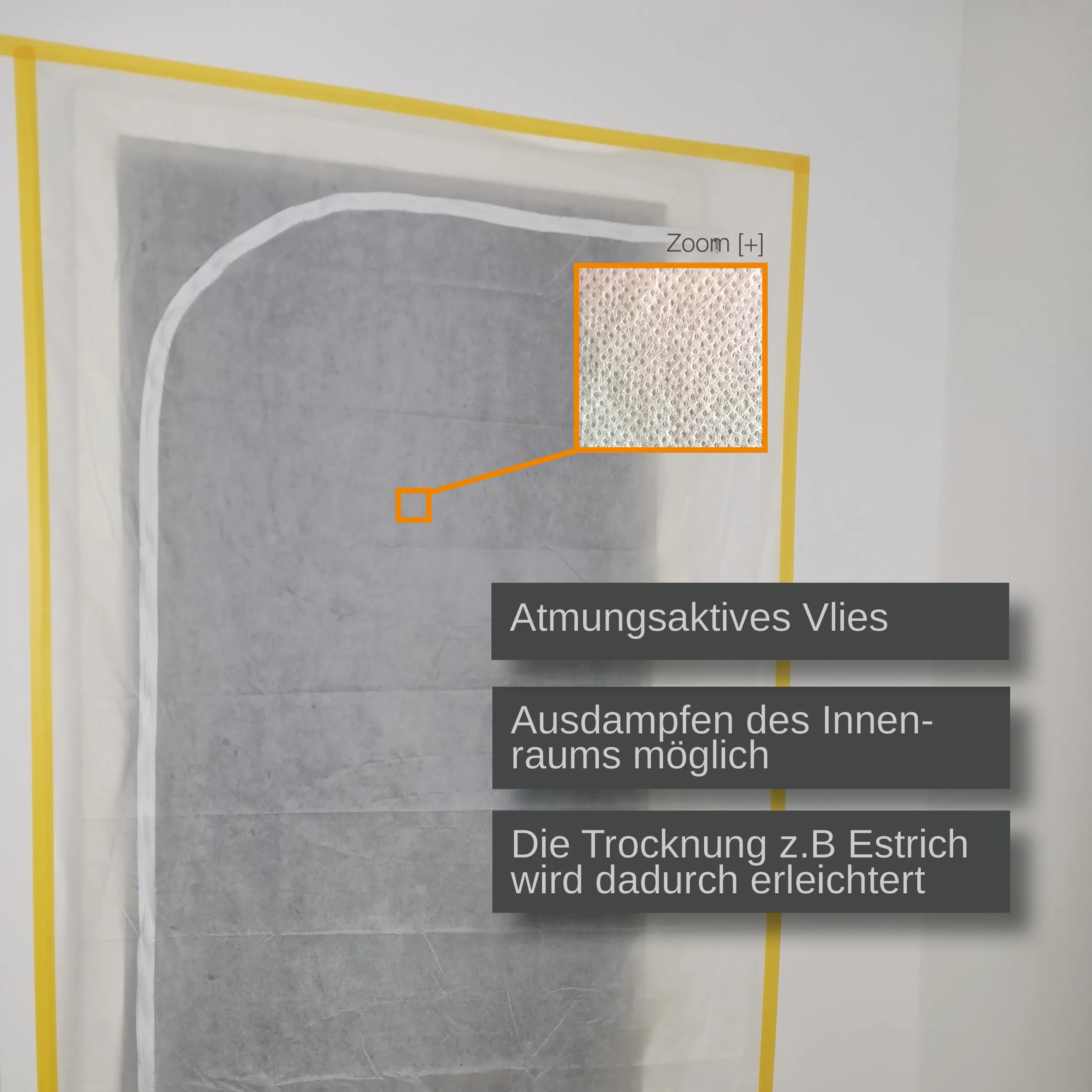 Die Profi Vlies-Staubschutztür ist die fachgerechte Lösung für staubfreies Arbeiten bei Renovierungen im Innenbereich. Im Gegensatz zu Folientüren ist das hochwertige Vlies-Material atmungsaktiv, was besonders bei Trocknungs- oder Lackierprozessen für einen besseren Luftaustausch sorgt, während gefährlicher Baustaub dennoch sicher im Arbeitsraum zurückgehalten wird.
