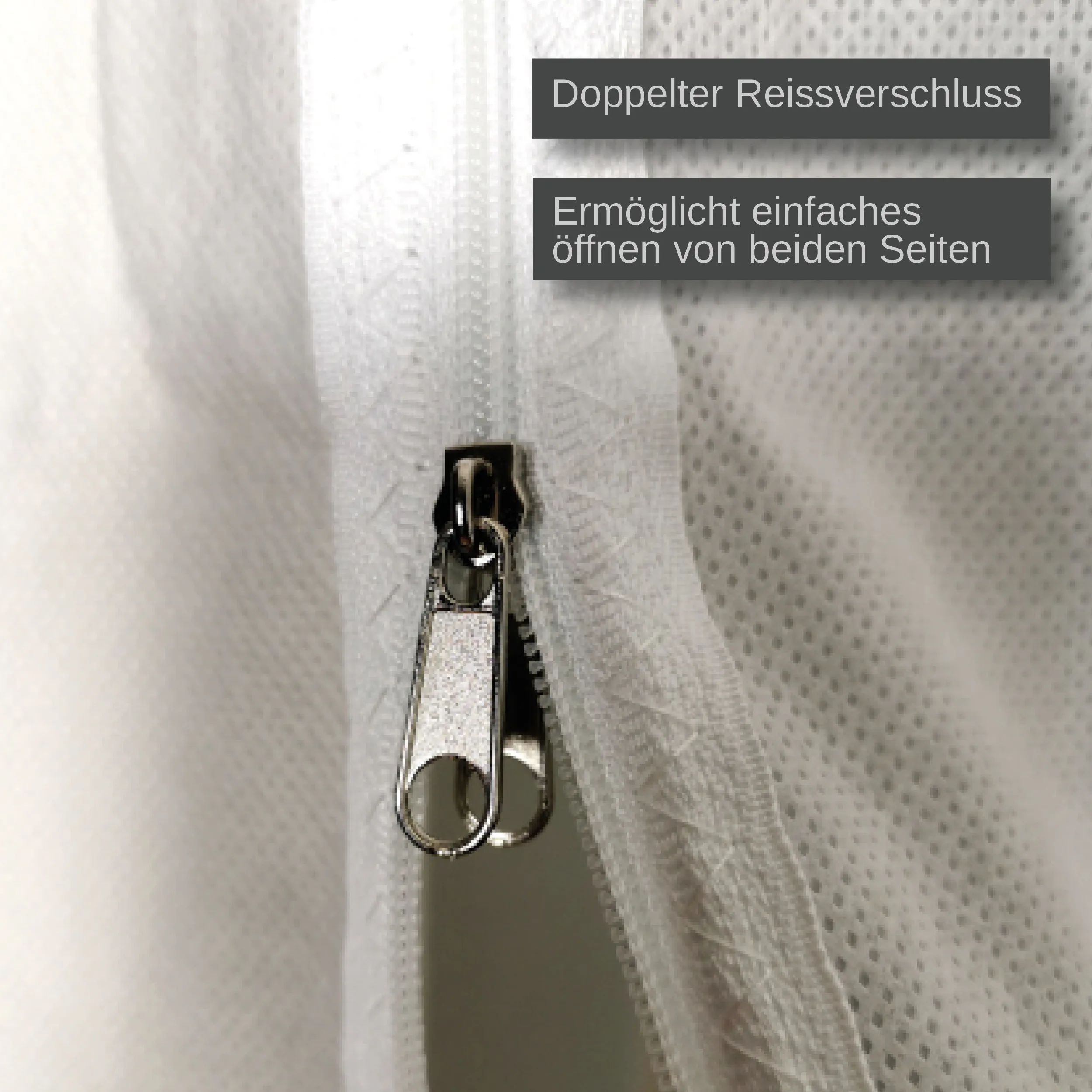 • Ergonomischer C-Reißverschluss: Eingenähtes System ermöglicht weites Öffnen und barrierefreien Zugang