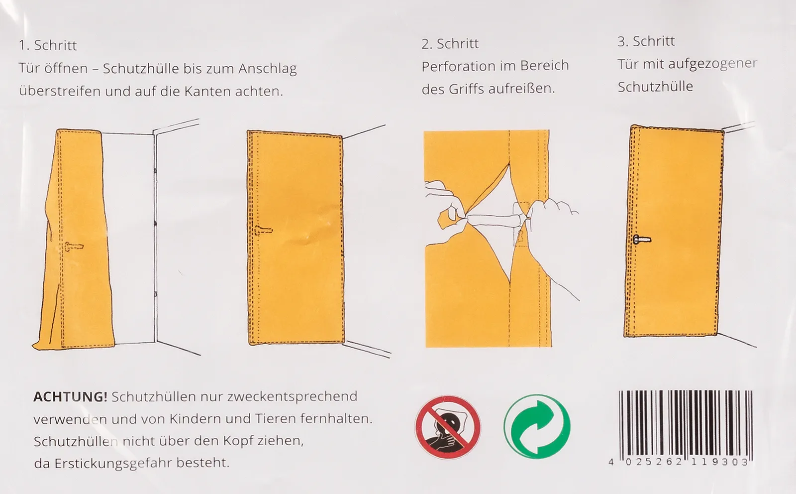 SIMPROFLEX 30my LDPE Türschutzhülle für zeitsparende Abdeckarbeiten und ein professionelles Auftreten beim Kunden.